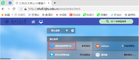 第一步:登录兰州交通大学官网网上办事大厅,点击进入创新创业管理平台;