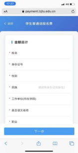 3.按照提示填写报名信息后点击“下一步”
