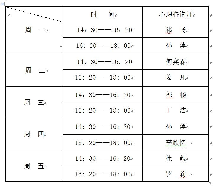 我校心理健康教育服务中心致力于服务广大师生,在坚持开展各项形式新颖、丰富多彩的心理健康宣传教育活动的同时,开展团体辅导和个别咨询工作。现将个别咨询时间通知如下,热忱欢迎广大师生前来咨询,我们将用心理学专业知识真诚地为大家答疑解惑!