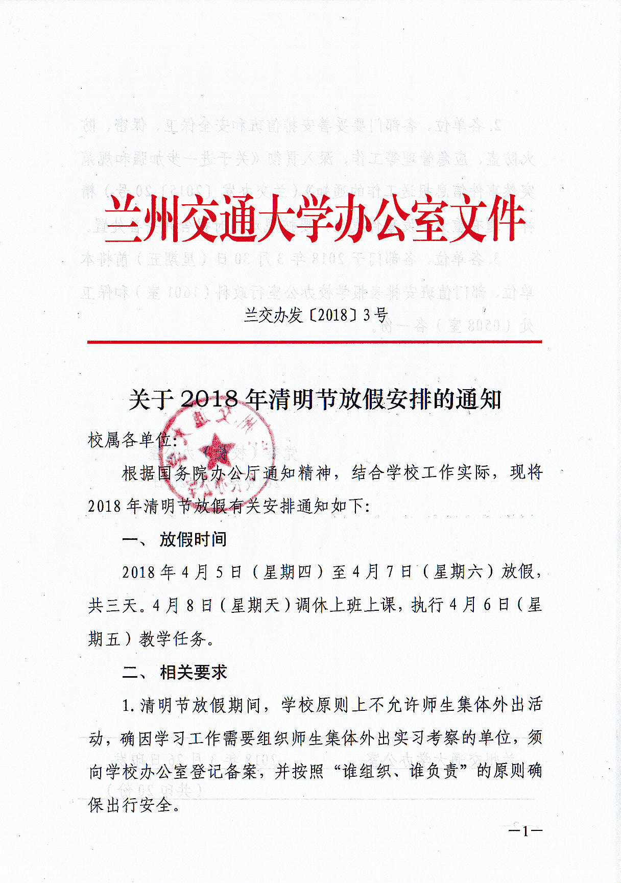 关于2018年清明节放假安排的通知