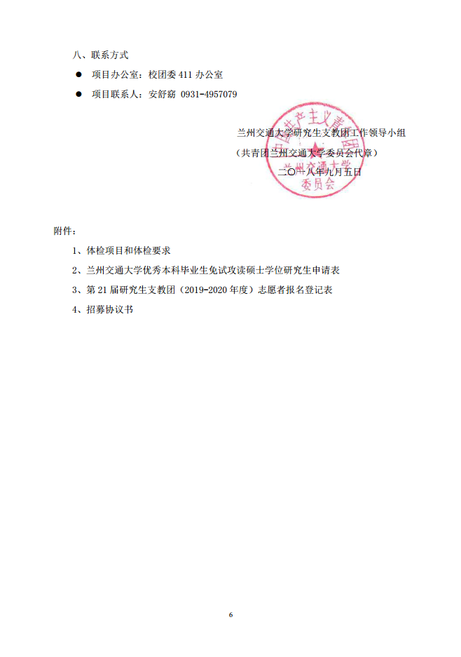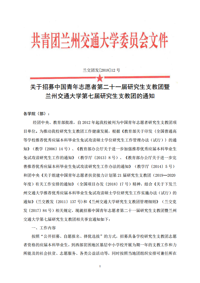 关于招募中国青年志愿者第二十一届研究生支教团暨兰州交通大学第七届研究生支教团的通知