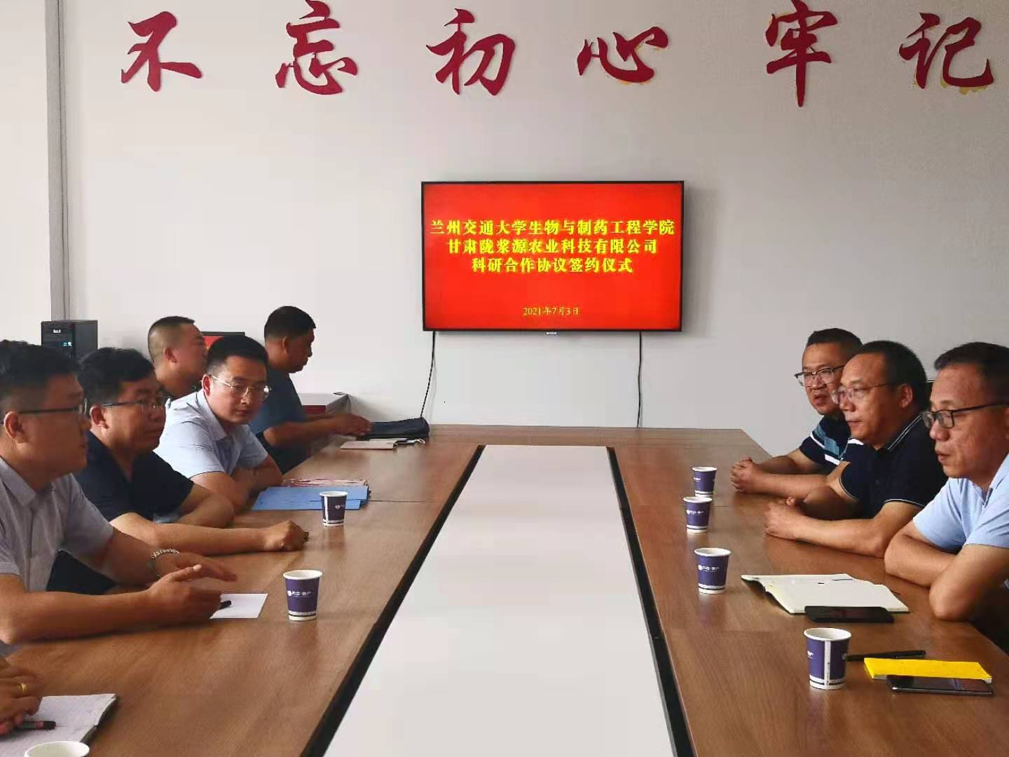 在双方座谈交流会上,武山县县委常委、副县长吴学深出席并致辞。我校生物与制药工程学院副院长田永强与甘肃陇浆源农业科技有限公司董事长王兵代表双方签署协议。