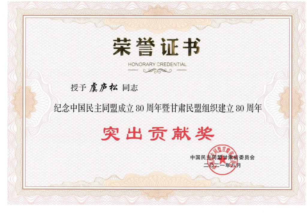 马廷礼代表中共甘肃省委向中国民主同盟成立80周年、甘肃民盟组织建立80周年表示热烈的祝贺,对甘肃民盟过去80年取得的工作成绩给予充分肯定。大会表彰了在盟务工作方面取得突出成绩的集体和个人,我校褚衍东教授等10名同志被授予“特殊贡献奖”荣誉称号,我校民盟委员会主委虞庐松教授等100名同志被授予“突出贡献奖”荣誉称号。