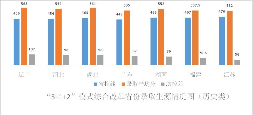 在8个“3+1+2”模式新高考改革省份,无论普通物理类还是普通历史类,我校录取生源质量均有大幅度攀升,物理类录取平均分均超出当地省控线100分以上,历史类录取平均分均超出当地省控线50分以上,具体如下。