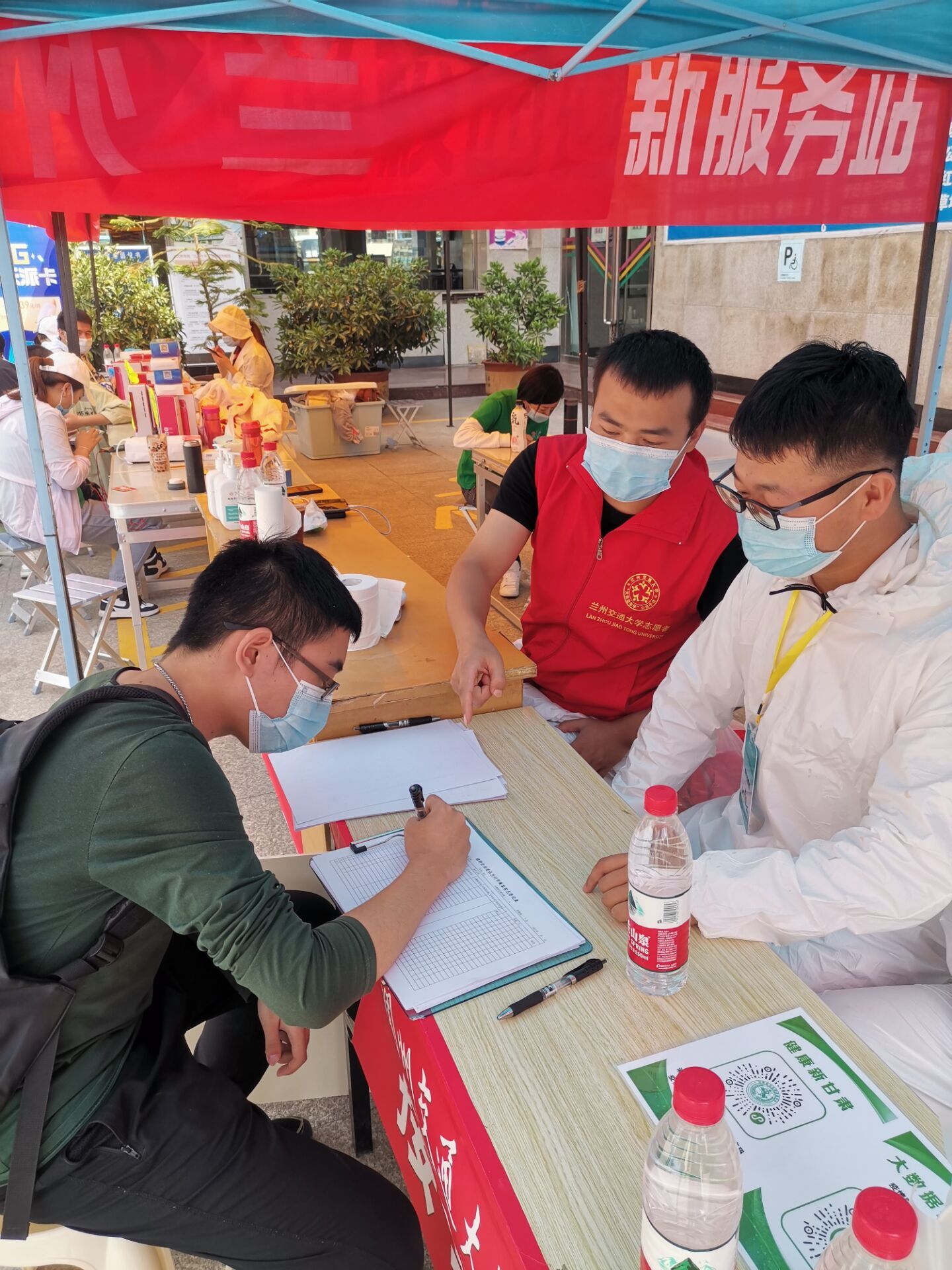 初秋时节,雨露微寒。志愿者们在每天清晨已悄然上岗。他们驻扎于兰州汽车东站、兰州火车东站、兰州西客站、中川机场的接站点,忙碌在学校正门的报到处,身着防护服的他们,坚守岗位,连续工作15小时,负责测量体温、核对两证两码一证明、搬运行李、维护返校秩序等工作。