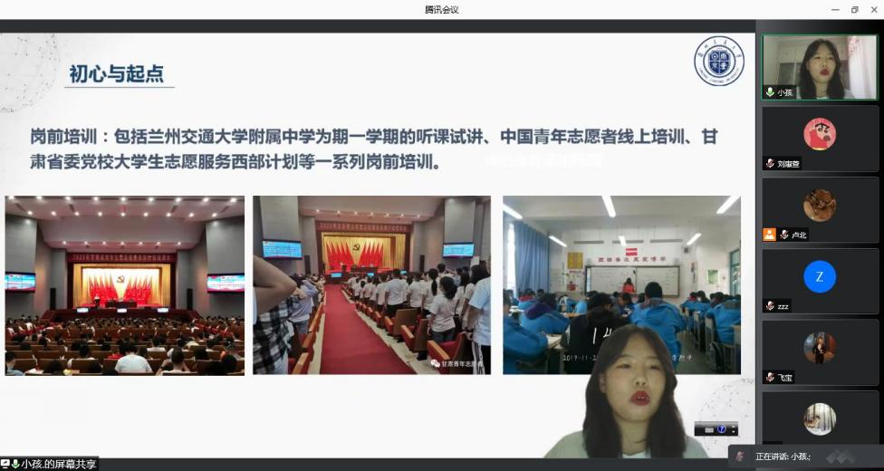 在中国青年志愿者扶贫接力计划第24届暨我校第10届研究生支教团招募之际,为更好地扩大支教团的影响力度,招募更多有理想、知国情、有担当的青年人才,9月6日晚,我校团委组织了线上研究生支教团宣讲会,全校2018级本科毕业班以团支部为单位组织毕业生们参加了线上宣讲会。