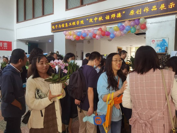 在喜迎中秋、国庆双节之际,电子与信息工程学院在励志楼大厅举办了“迎中秋 话师德”原创作品展示活动。