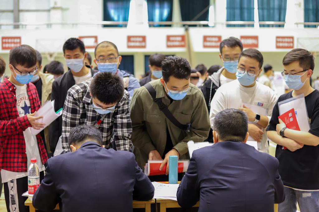 宣讲会后,专场招聘会在体育馆开幕。此次招聘岗位涵盖机械设计制造类、电气工程及其自动化类、计算机及电子信息类、车辆工程类、材料及热加工类、专业管理类等六大类。中车集团2022届毕业生招聘会总共提供2600余个就业岗位,我校为中车集团本年度招聘会的第一站,吸引众多毕业生参与。