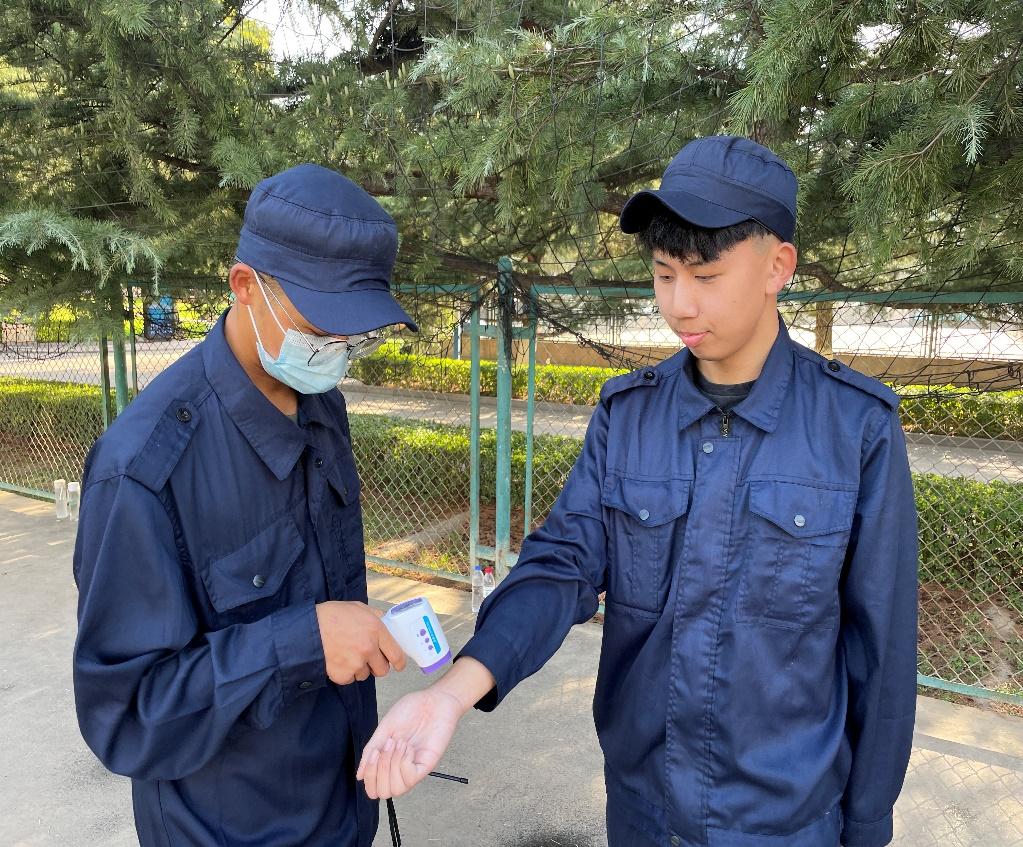 场地巡逻组密切关注军训场内外的动态,随时测量体温