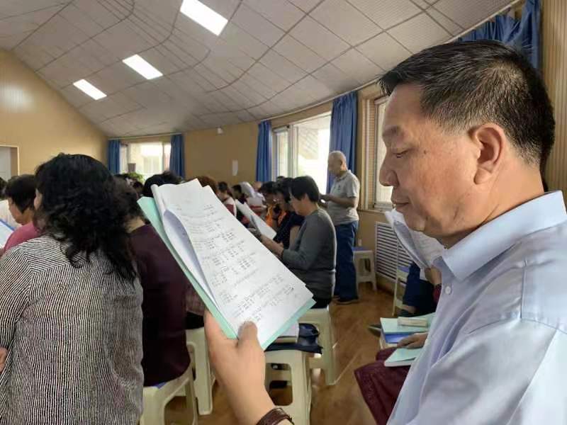 在宋平老师的指挥下,大家一起演唱了《今天是你的生日,中国》《我和我的祖国》《我的战鹰绕着宝岛飞》《祝福祖国》等经典歌曲。演唱结束后,作为老年大学校长,朱廷珺祝福合唱班的学员节日快乐,幸福安康,并希望大家在合唱班唱出好心情,唱出美好的明天。
