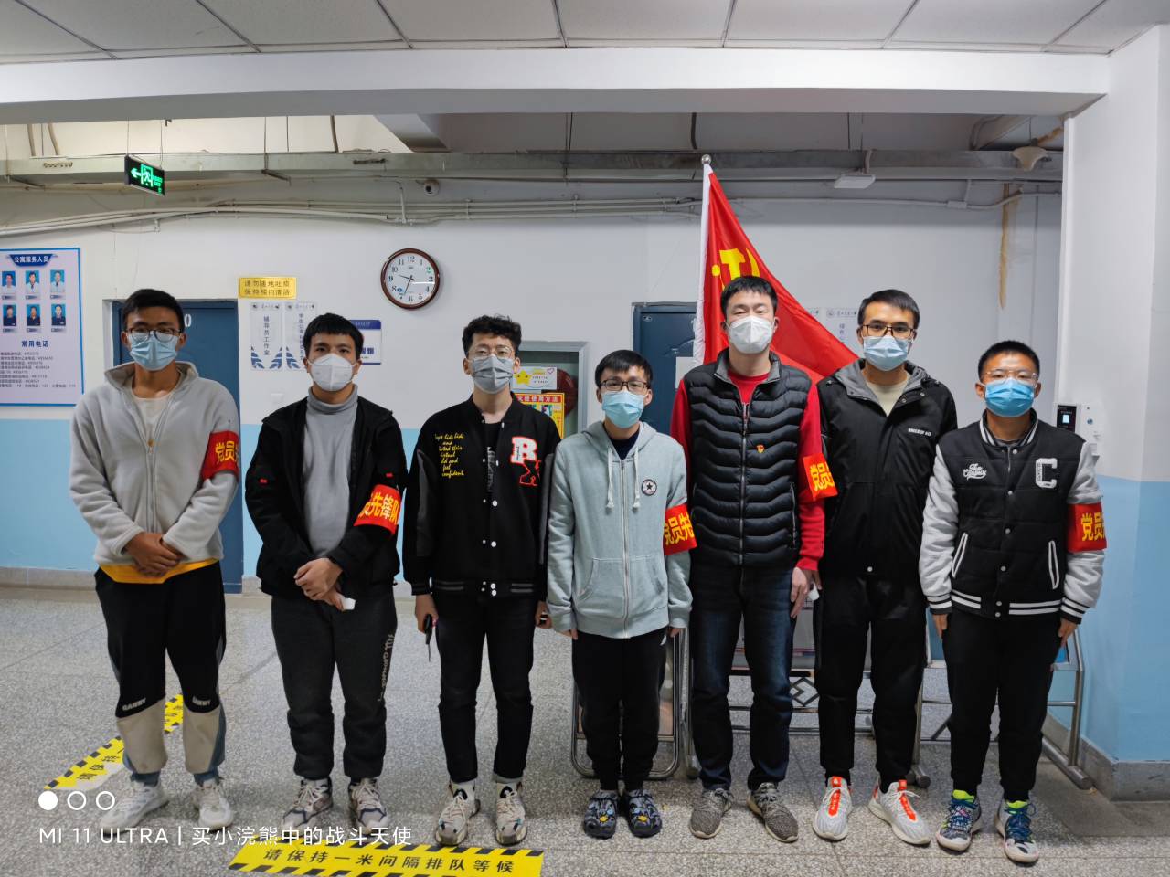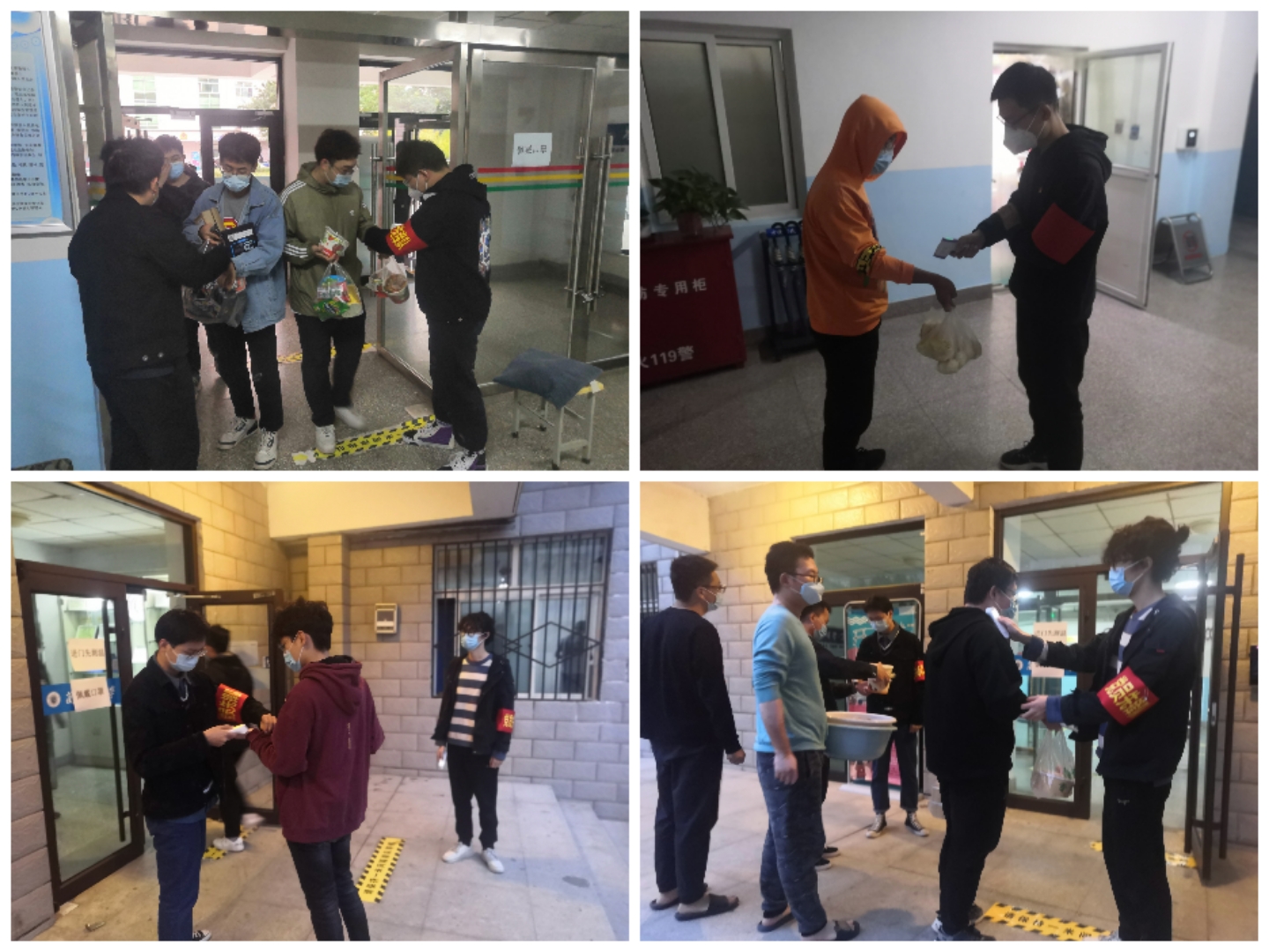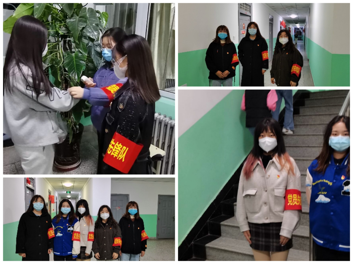 学院“党员先锋队”在严格遵守学校疫情防控要求和做好自我防护的前提下,前往学生公寓北苑6号楼、北苑7号楼、南苑5号楼参与疫情防控,全力协助宿舍管理人员测温验码、人员登记和处理突发状况。劝导学生不要在楼内公共区域聚集扎堆、要保持宿舍、楼道以及厕所卫生干净,督促同学出入宿舍、食堂、校园活动一定要佩戴好口罩,提醒学生做好自我防护,既当“服务员”,又当“宣传员”,以实际行动坚决扛起疫情防控政治责任,让党旗在疫情防控一线高高飘扬。