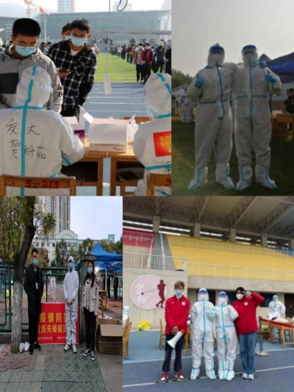 “青马工程”培训班学员在疫情防控的关键时刻,主动向学校和学院请缨,申请加入疫情防控志愿服务工作。主动穿上红马甲和防护服,积极投身疫情防控第一线,作为校园6轮核酸检测志愿者,用身躯筑起了一道道“红色”与“白色”的防疫阵线,对学校6个核酸检测点的秩序疏导、协助老师安排志愿者工作。