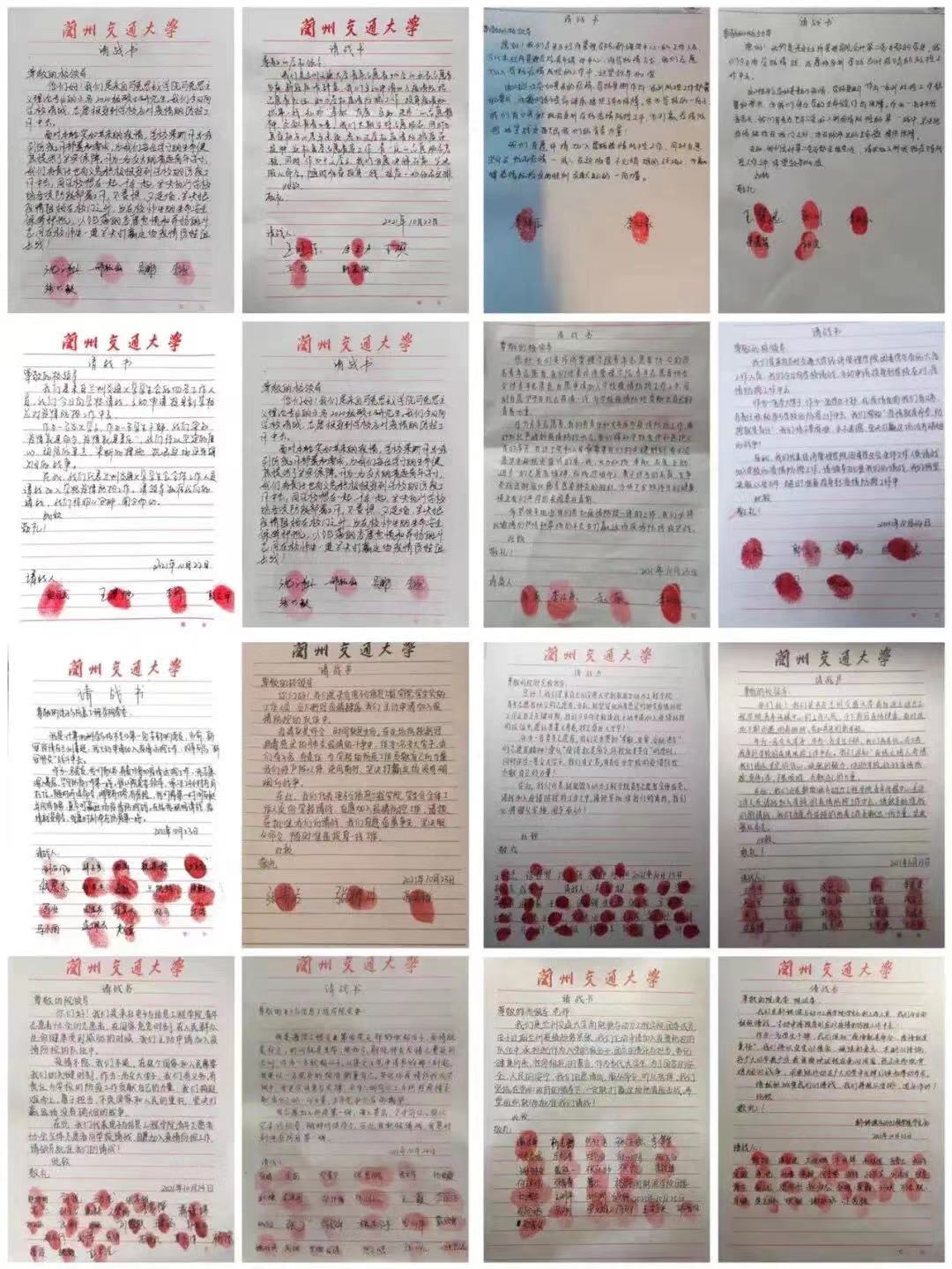 兰州交通大学学生会坚决贯彻落实校党委防疫防控总体安排,积极响应各级组织号召,迅速行动。校学生会成员纷纷主动请缨,呈送“请战书”20余份,主动投身疫情防控“第一线”。