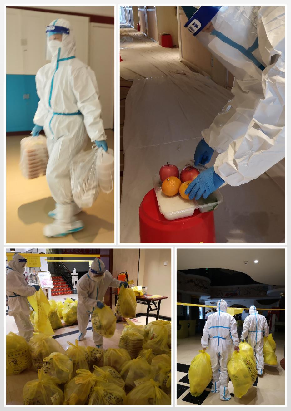 除此之外,根据健康观测点的标准和要求,不得使用中央空调,而“坤逸”健康观测点又没有暖气,全体师生都要克服十一月立冬后的寒冷天气,即使在室内也要穿羽绒服和厚鞋子。从脱下防护服的大汗淋漓,到室内的干燥阴冷,简直是冰火两重天,但全体管护人员齐心协力、共克艰难的热情和笑容却始终洋溢在脸上,这也许就是前线“战役”不当逃兵,坚决打赢胜仗带来的无穷力量,这也许就是默默奉献、勤奋耕耘的“师者”和“医者”的大爱精神。