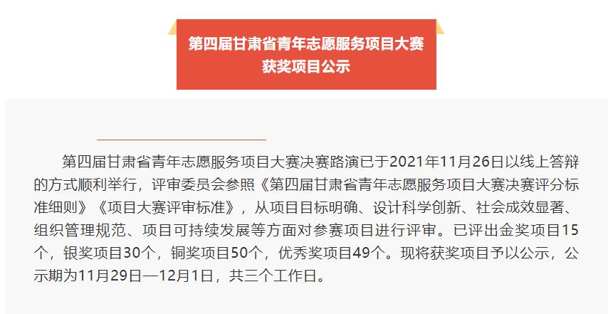 我校在第四届甘肃省青年志愿服务项目大赛中喜获佳绩