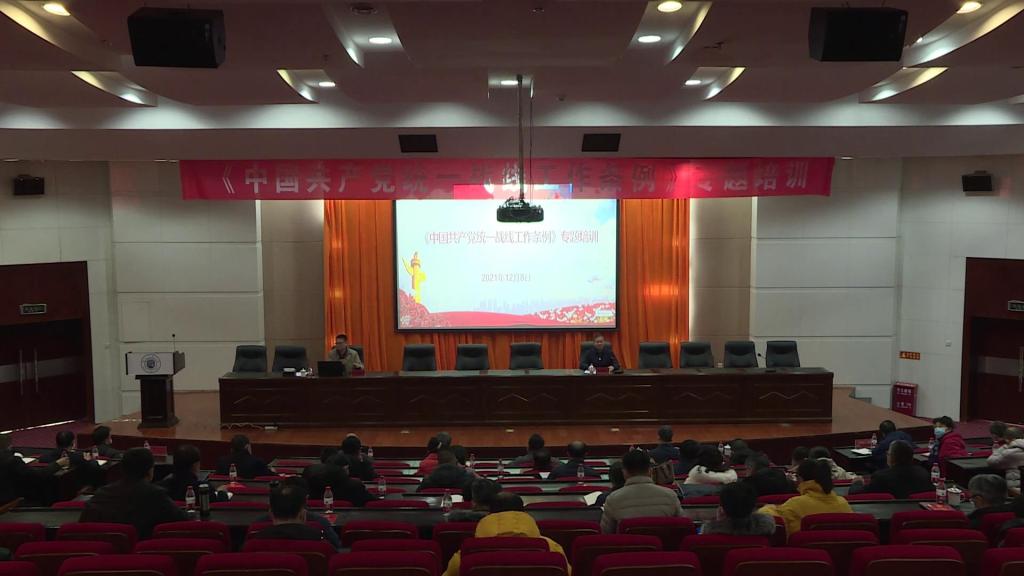 为全面贯彻中央、省委统战工作会议精神和《中国共产党统一战线工作条例》,进一步提升我校统一战线工作水平,12月8日下午,学校在尚德楼3楼大报告厅举办了学习贯彻《中国共产党统一战线工作条例》专题培训。学校统一战线工作(民族宗教工作)领导小组成员,全体统战委员,省政协委员、省政府参事,各民主党派、统战团体的负责同志近120人参加。校党委常委、副校长、统战部部长党建武同志主持培训会。
