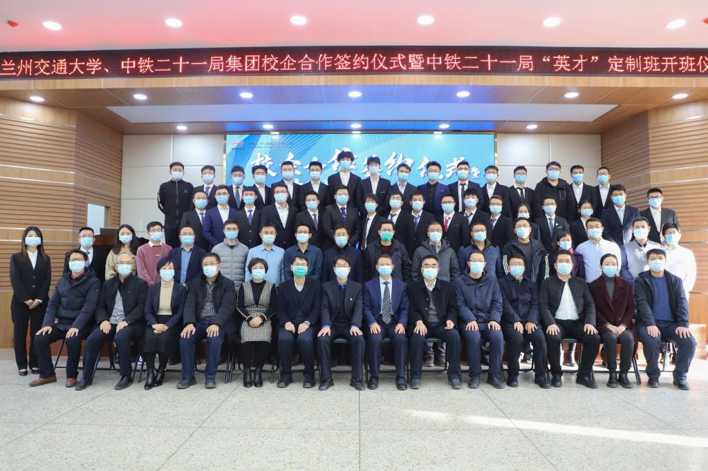 12月9日下午,兰州交通大学与中铁二十一局集团有限公司校企合作签约仪式暨“英才定制班”开班仪式在我校二教报告厅举行。中铁二十一局集团公司党委副书记、工会主席田爱平、集团公司第二工程有限公司党委副书记、工会主席王建宏等领导,我校副校长陈兴冲出席,党委宣传部、教务处、学生处、招生就业处、校团委及相关学院负责人、“英才定制班”全体学生参加了开班典礼。