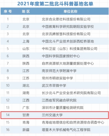 图1 2021年度第二批北斗科普基地名单