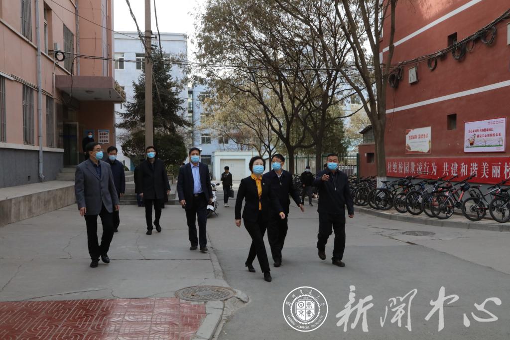 王海燕一行先后前往学生公寓、学生食堂、附属中学、附属小学等重点区域,实地查看了解校门管控、公寓防疫、餐厅防疫、校园管理等防疫措施落实情况,并听取相关工作汇报。