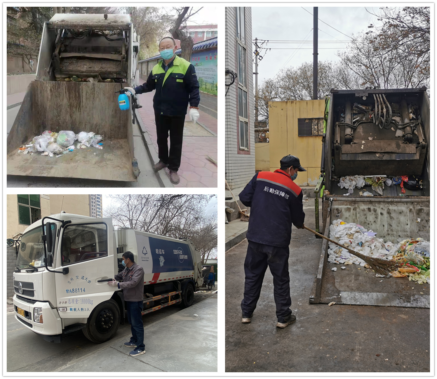 环卫中心是校园环境的打造者和守护者,一年365天细心呵护每一株苗木,用一根根扫把描绘出清净如画的校园风景。当得知学校即将封校管控的消息时,环卫中心主任提早安排,做好职工思想工作,调整工作重心,带领69名职工坚决完成全校道路清扫保洁、绿化带养护、垃圾清运等工作。中心领导班子3人率先垂范,哪里缺人就顶到哪里,哪里工作量大就出现在哪里。由于食堂取消堂食,学生公寓的餐饮垃圾暴增,且需要将泔水和垃圾做必要清分,中心集中调配人力物力,确保垃圾及时处理,避免造成二次污染。中心职工以校为家,从早上5、6点到深夜11点都可见到他们忙碌的身影。