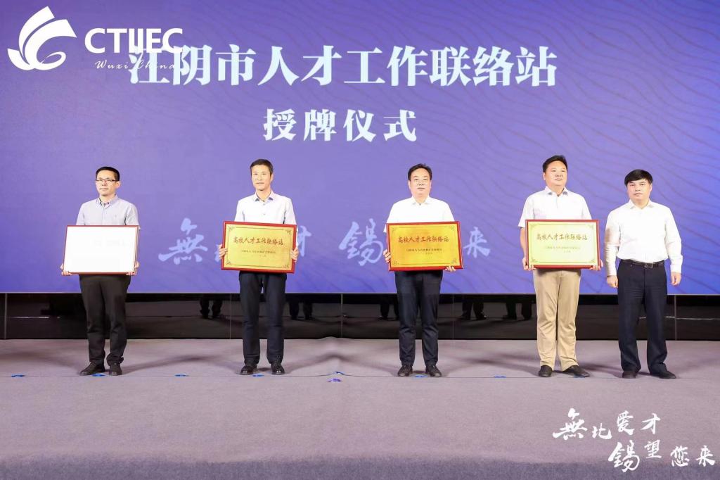 6月15日,江阴市科技和人才工作领导小组来我校交流。座谈会上,招生就业处负责人介绍了学校毕业生基本情况与就业工作举措,表明我校在现有基础上进一步推动校地合作的愿望。双方共同探讨了强化战略合作的必要性,并对高校毕业生如何深耕专业技能,培养终身学习的意识与能力等课题达成共识。在授牌仪式上江阴市科技和人才工作领导小组授予我校“江阴高校人才工作联络站”并设置“无锡太湖人才奖学金”。为未来双方强化校地人才合作奠定基础。