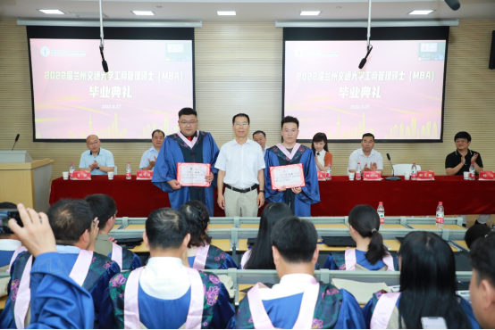 毕业典礼最后,刘振奎发表了饱含深情、热情洋溢的讲话,他首先代表学校向2021-2022年毕业的204名MBA学员表示热烈的祝贺。刘振奎指出,学校办学六十多年来,与国同梦、与时俱进,把握时代脉搏,为祖国培育了二十余万人才,MBA学员作为这些优秀人才的一部分,在祖国建设的征程中都做出了应有的贡献,学校为之欣慰。近年来,学校高度重视专业学位的发展,兰州交通大学MBA已经成为我校办学规模最大、特色特点显著的专业学位。希望毕业学员带着“尚德、励志、博学、笃行”的兰州交大烙印,以高度的热情,继续把自己的力量投身到祖国最需要的地方。最后,他衷心希望全体毕业生在未来用专心致志、善始善终的工商报国态度,拓展人生的宽度、厚度和高度。