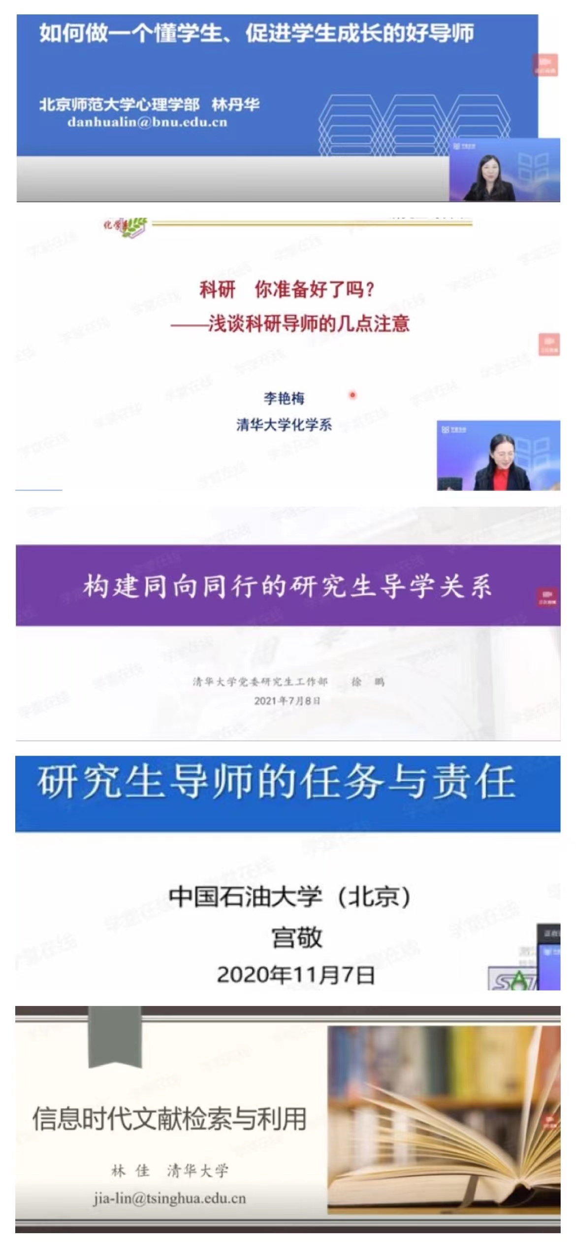 本次培训分为校级培训和院级培训两个阶段,校级培训主要包含“研究生导师的任务与责任”“如何做一个懂学生、促进学生成长的好导师”“构建同向同行的研究生导学关系”“信息时代文献检索与利用”和“科研,你在准备好了吗?—浅谈科研导师的几点注意”等五方面内容。