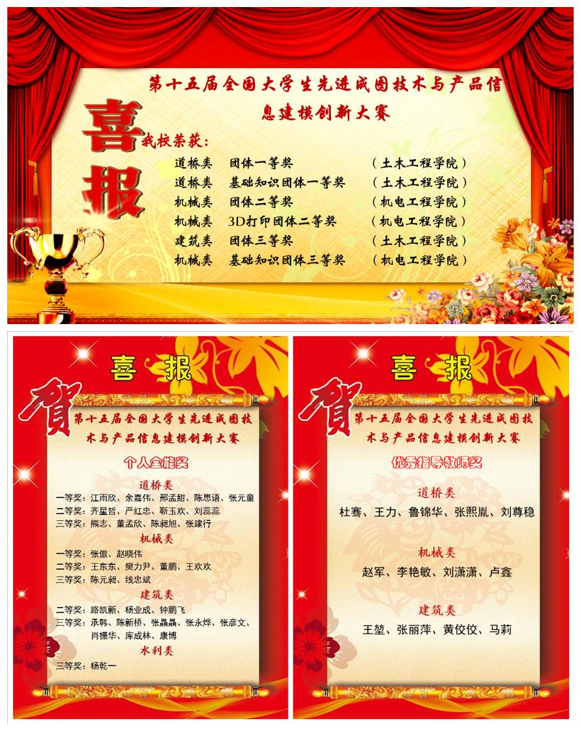 经过校赛和省赛选拔,在学校大力支持下,相关教学单位师生的共同努力下,由土木工程学院学生参加的建筑类、道桥类和水利类比赛,机电工程学院、新能源学院学生参加的机械类比赛均取得了良好成绩。参赛同学们克服疫情和天气炎热等困难,经过激烈角逐,最终获得“道桥类团体一等奖”“道桥类基础知识一等奖”“机械类团体二等奖”“机械类3D打印团体二等奖”“建筑类团体三等奖”“机械类基础知识三等奖”,并荣获个人全能一等奖7项、二等奖11项、三等奖15项。张丽萍、赵军、杜骞、王堃等13名教师荣获优秀指导教师奖。