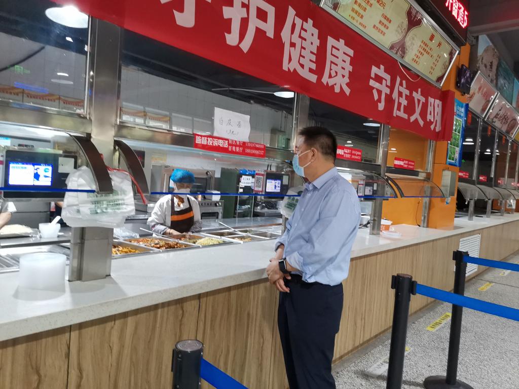 在教工餐厅和北苑餐厅清真食堂,朱廷珺深入后堂,对食品加工制作、餐具清洗消毒、环境及个人卫生等进行检查。他强调,食品卫生安全是餐饮服务的最低要求,要严把食材的源头关,努力提高食品安全管理水平,积极建设规范化、标准化食堂。