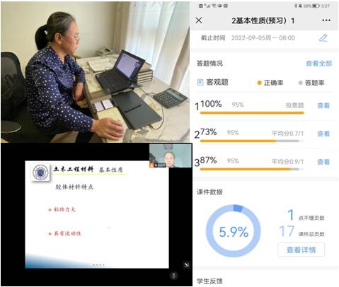 同心战疫,共克时艰。师生们把课堂变成抗疫的战场,展现出优良的教风和学风。土木工程学院张粉芹老师使用腾讯会议+雨课堂的形式,开展《土木工程材料》线上教学。腾讯会议进行课程直播,实现互动教学,有效引导学生参与学习;”雨课堂“发布课件,完成课前预习、课中弹幕投稿、答题测试等过程性考核,时刻使学生参与到学习过程中来,并且及时了解学生学习情况。课后学生可在教学平台上,及时查看教学报告及课件,便于复习与提高。
