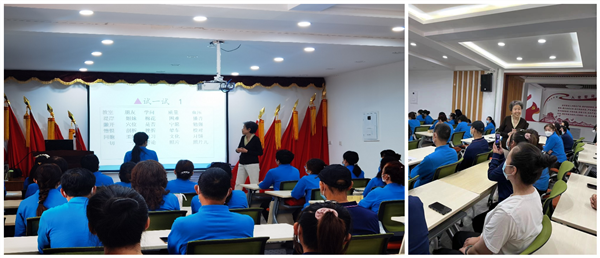甘肃省语言文字工作专家咨询委员会委员、国家级普通话水平测试员、兰州交通大学文学院副教授李孝英以《说好普通话 服务育新人》为题,作了专题讲座,中心管理干部、宿舍管理员等80余人参加了培训。李孝英带领大家深入学习和宣传阐释了习近平总书记关于推广国家通用语言文字的重要指示批示精神,宣讲了相关法律法规,同时结合新时代语言文字示范校的建设,解读了示范校评估标准中对后勤工作人员的要求。李孝英结合高校后勤工作的实际,向大家介绍了如何用普通话讲好文明语的基础知识,最后对全体参加培训的员工进行了普通话发音训练。