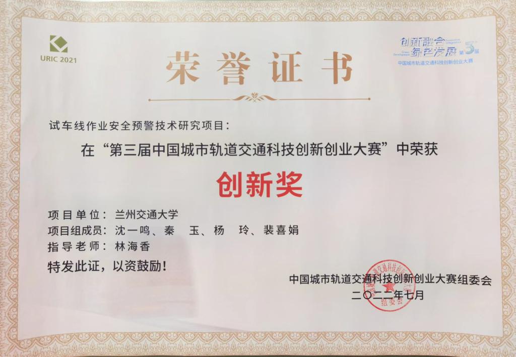 近日,在国家大力推进“交通强国”的战略引领背景下,第三届中国城市轨道交通科技创新创业大赛全国总决赛在北京落下帷幕。竞赛线上线下同步进行,最终,由我校自动化学院林海香老师指导,计算机科学与技术专业学生沈一鸣、秦玉、杨玲、裴喜娟等4人学生团队打造的“试车线作业安全预警技术研究”项目获得总决赛大奖“基础研究类创新奖”。由于疫情影响,本次比赛从参评到决赛,历时两年,团队成员克服重重困难,坚持不懈,不断完善设计思路和方案,经过三轮激烈的角逐,从上千个参赛项目中脱颖而出,最终在全国总决赛中取得了优异成绩,此奖项也是本届比赛我省高校取得的最好成绩。