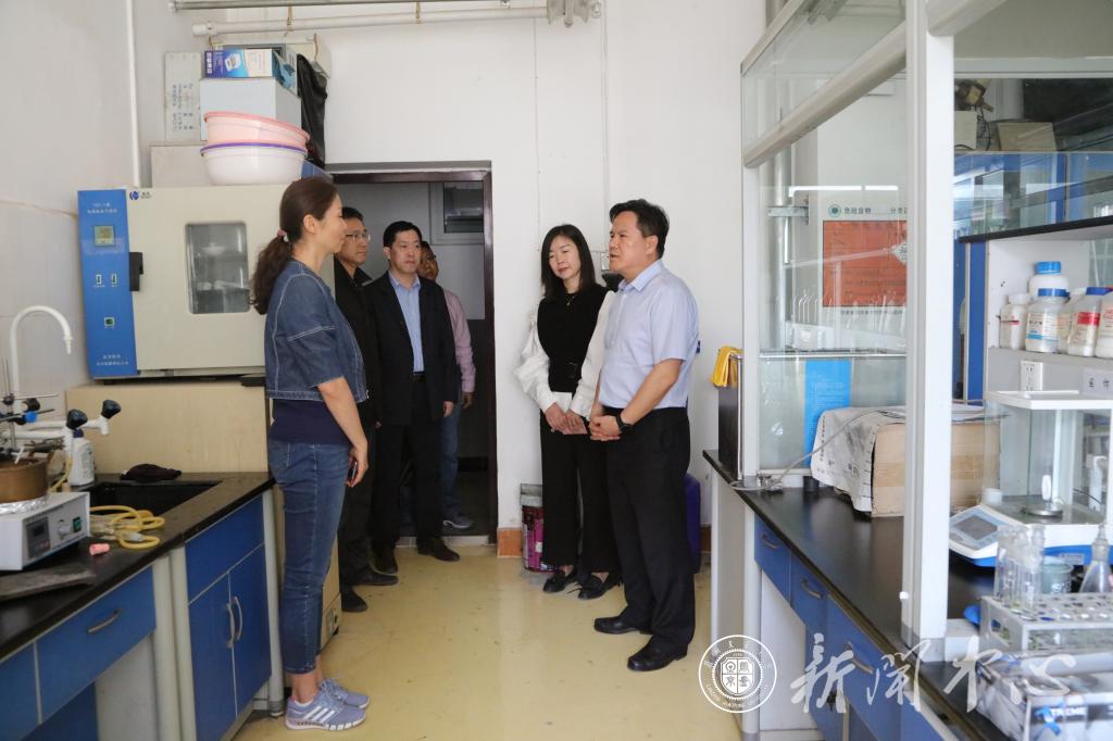狄生奎书记一行深入办公室、教研室看望坚守在一线工作的教师,详细询问了老师的工作情况和生活情况,并向大家表示亲切的慰问。接着实地考察了教师科研室、公共实验室,详细了解实验室的运行情况,强调实验室安全是学院务必坚守的底线。