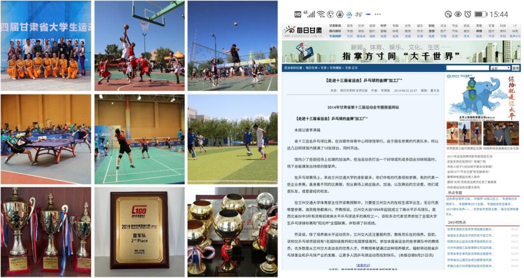 强抓师资场馆,提高服务能力。体育部坚持引进与培养相结合,强抓师资队伍建设。现有教工43名,其中,教师40人,教辅人员3人。在教师中,有教授3人,副教授16人,国际级裁判员1人,国家级裁判员13人,是甘肃高校中拥有国家级以上裁判员最多的学校,这些教师裁判员每年多次在国际、国家级、省级及基层比赛中承担了裁判和赛事组织等社会服务工作。学校体育场馆设施不断改善,新体育馆将在明年竣工。专业师资队伍、日臻完善的场馆设施促使社会服务能力不断增强,先后承办了全国高校“校长杯”乒乓球比赛,“留动中国”全国留学生体育比赛,全国大学生公园定向巡回赛,全省大学生乒乓球、网球、足球、篮球等重要体育赛事。基于贡献和能力,我校成为中国大学生体育协会乒乓球、网球、定向运动、桥牌等四个分会的副主席单位,国家体育总局体育文化发展研究中心研究基地,乒乓球、田径、足球项目高水平运动员招生学校,甘肃省大学体育课程教指委主任委员单位,甘肃省学校体育协会乒乓球、网球项目主席单位,甘肃省体育科学学会副理事长单位。