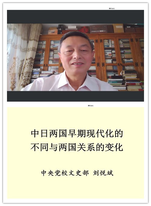 刘悦斌的报告回溯了“中日两国的早期关系”,深入分析比较了“中日两国早期现代化的不同”,从政治结构、经济结构、国际环境、历史传统和文化心理四个方面深刻阐释了“中日两国关系为什么会有不同”,并指出由于两国早期现代化的不同和日本军国主义的兴起导致了“中日两国关系的变化”。刘悦斌指出,日本现代化的经验值得我们学习借鉴,但是必须要警惕和防范日本军国主义的复活。
