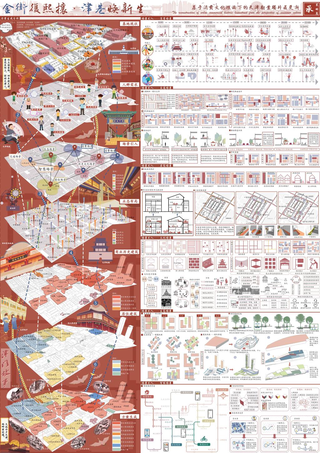 9月23日,第二届全国大学生国土空间规划设计竞赛圆满落幕。我校建筑与城市规划学院2019级城乡规划专业本科生胥德泽、马晓霞、盛婧薇、宋春辉、魏姝坤,在关惠元、朱家聪两位老师指导下,以“金街复熙攘·津巷焕新生——基于消费文化理论下的天津劝业场片区更新”为主题的参赛作品,获得本科组三等奖。