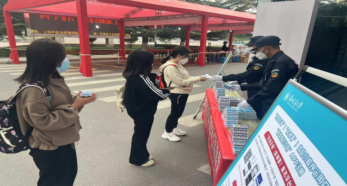 赠发文创用品,寓教于乐宣传。在新生报到现场,工作人员还通过有奖问答等形式,向报到新生赠发了提前创制的以防电诈、反恐怖、反邪教为主题的扑克牌等文创产品3000余件,在轻松愉快的环境中完成了寓教于乐宣传。