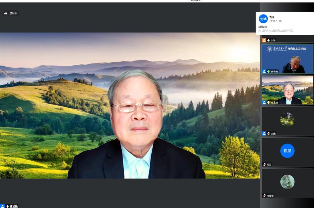 10月13日上午,我校马克思主义学院“学习新思想 迎接二十大”马克思主义理论名师大家讲坛第六场学术报告会举行。南京师范大学马克思主义学院二级教授、博士生导师曹孟勤应邀线上作了题为“对劳动的第一哲学思考”的学术报告。我校马克思主义学院全体师生、校内有关干部、教师和2022级博士生,以及部分兄弟院校思政课教师共计360多人聆听了报告,马克思主义学院院长蔡中宏教授主持了报告会。