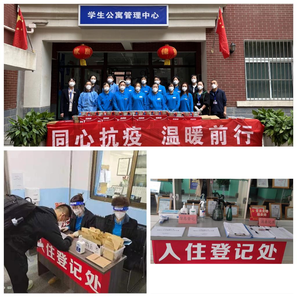 做好公寓服务保障,筑牢疫情防控安全防线。新冠肺炎疫情突发后,中心第一时间成立疫情防控工作小组,落实工作责任,强化工作措施,筑牢公寓防疫防线,在学校疫情防控工作的统一部署下,不断完善疫情安全管理各项规章制度。中心先后有100余名员工多次入住校园,坚守“值班员—管理员—中心工作小组”的三级值班制度;制作封闭管理期间学生进出公寓“一舍一证”;建立非公寓人员进出台账和疫情防控值班日志台账。学生公寓作为校园防疫的重点区域,严格落实学生公寓公共区域卫生清洁、消杀通风及体温监测等各项措施,每日3次对宿舍走廊、楼梯、卫生间等公共区域进行全面消杀、通风,对同学们经常接触的门厅拉手、楼梯扶手等反复擦拭消毒。为了便捷同学们做好自我防护,还提供感应式手部消杀器、手部免洗消杀凝露以及供宿舍借用的标准配比消杀壶,确保消杀到位。疫情防控期间,公寓学生生活垃圾急剧增加,垃圾清运频次和数量也随之加大,公寓保洁员每天凌晨3点起床,对公寓各个角落多次进行消杀、清理、通风,坚决杜绝垃圾死角,兢兢业业坚守在疫情防控的第一线,使学生备受“妈妈般”的关心和爱护。已完成消杀通风15840余次,垃圾清运13420余次,清运垃圾2400余吨。筑牢学生住宿安全屏障,建立长效机制,为学生发展营造良好的公寓环境。