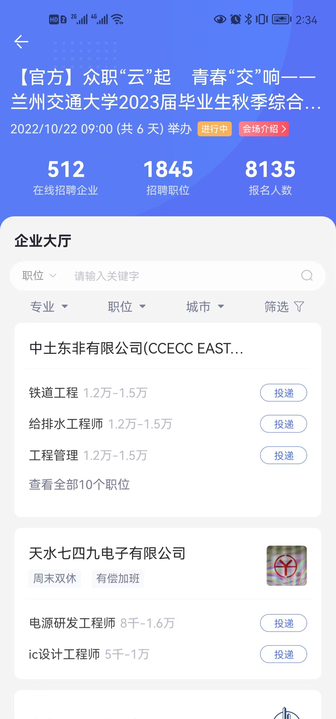 为推动我校2023届毕业生更高质量更充分就业,持续做好疫情常态化防控期间用人单位与毕业生的桥梁,10月22日至23日,我校举办众职“云”起 青春“交”响兰州交通大学2023届毕业生秋季综合类首场线上双选会。