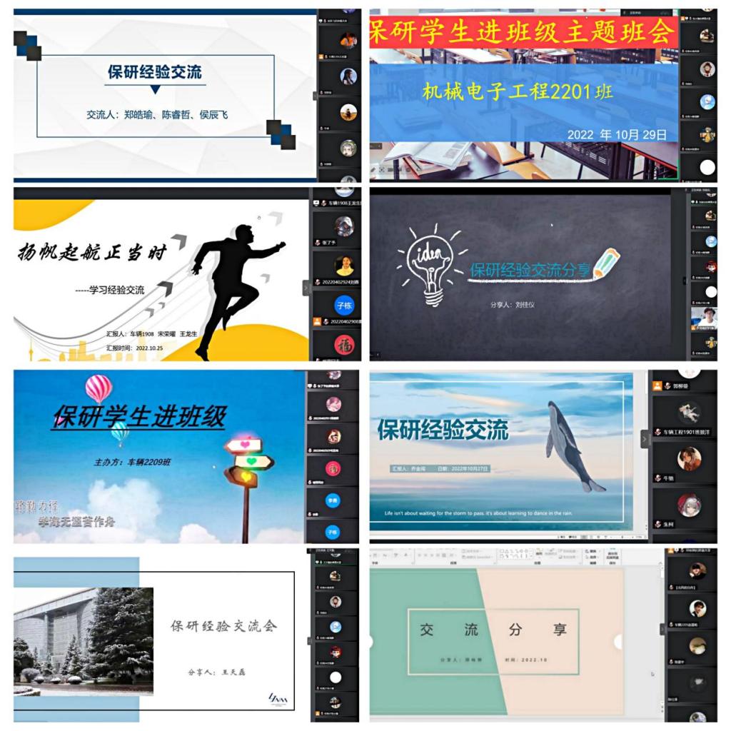 保研学子进普通班级宣讲。顺利保研到浙江大学、天津大学、同济大学、北京交通大学、西北工业大学、西南交通大学等高校的33位同学担任主讲嘉宾,每2至3位保研学子分别深入2022级18个班级全覆盖进行了学习经验分享。保研学子们讲述了个人三年的大学学习、生活和实践实训情况,解读了学校保研的相关政策和流程;提醒同学们合理规划大学美好时光,夯实专业知识,积极参加学科竞赛和实践活动,锤炼过硬本领;培养广泛的兴趣爱好,多参加体育锻炼,强健体魄,保持良好精神面貌;针对大学生常见的学习生活中的困惑,提出了一些实用的建议和意见,鼓励2022级新生们能够志存高远、开拓创新,交出一份满意的人生答卷。同学们积极在线进行了交流互动,保研学子对大家提出的问题逐一做了详细解答。2022级新生们纷纷表示此次学习分享会提升了自己对考研与保研政策的了解,对考研、保研、前期准备与复试有了更深入准确的认识,汲取了丰富经验,获益良多。