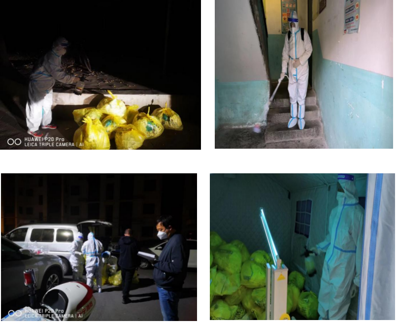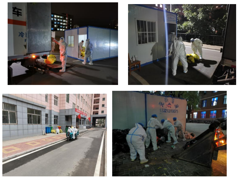 防疫期间环卫中心不仅需要完成校园清扫保洁工作,还承担了医废垃圾的收集转运及装车、物资保障通道消杀、风险区域室外消杀、学生配餐装卸、校内物资搬运、核酸检测场地布置、学生公寓生活垃圾转运、食堂早餐包装垃圾清理转运等防疫工作。环卫人员团结一致、吃苦耐劳、加班加点,冲在防疫第一线,不分白天黑夜,随时有工作随时完成。