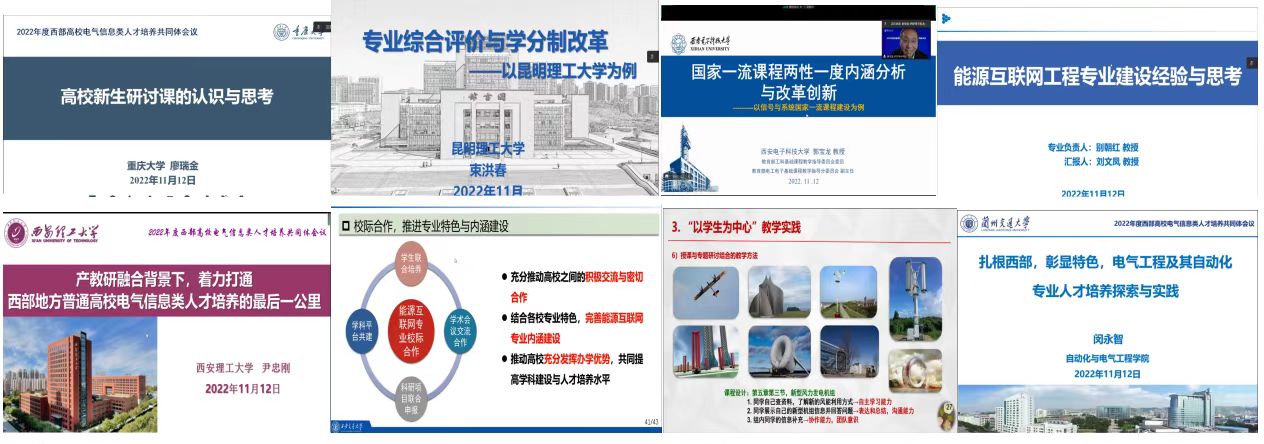 本次会议特邀了重庆大学廖瑞金教授,昆明理工大学束洪春教授,西安电子科技大学郭宝龙教授,西安交通大学刘文凤教授、西安理工大学尹忠刚教授、新疆大学王海云教授、兰州交通大学闵永智教授等7位专家分别做了《高校新生研讨课的认识与思考》《专业综合评价与学分制改革》《国家一流课程的“两性一度”内涵分析》《能源互联网工程专业建设探索》《产教研融合背景下,着力打通西部地方普通高校电气类人才培养的最后一公里》《以学生为中心的课堂教学改革方法探索》《扎根西部,彰显特色,电气工程及其自动化专业人才培养与探索》等人才培养方面的交流报告。专家们围绕新工科建设,以电气信息类人才培养探索与实践为主题,针对一流学科和专业建设、国家一流课程建设、专业虚拟教研室等内容进行了深入交流,分享了各高校的经验,为西部地区高校电气信息类人才培养模式的创新提供了有益的交流和学习。