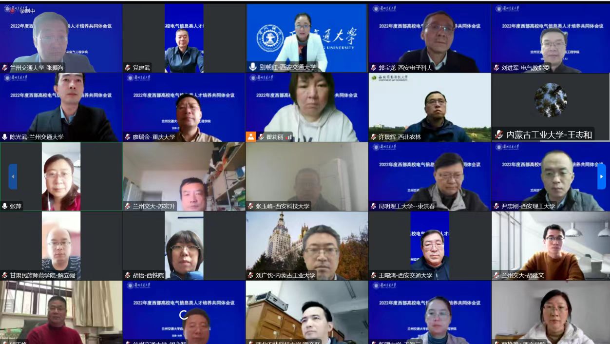 11月12日,2022年度西部高校电气信息类人才培养共同体会议在线上举行。本次会议在西部高校电气信息类人才培养共同体的支持下,由自动化与电气工程学院承办。西安交通大学副校长别朝红、兰州交通大学副校长党建武、教育部电工电子基础课程教学指导分委员会主任委员王志功、教育部电气类专业教学指导委员会副主任委员刘进军出席大会并致辞。西部地区25所高校代表150余人参加了会议。会议由自动化与电气工程学院负责人主持。