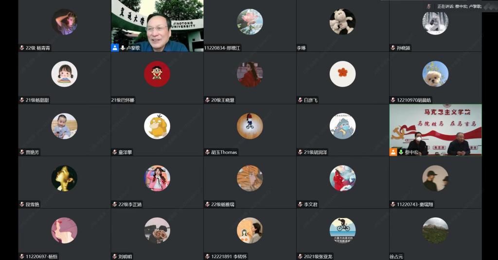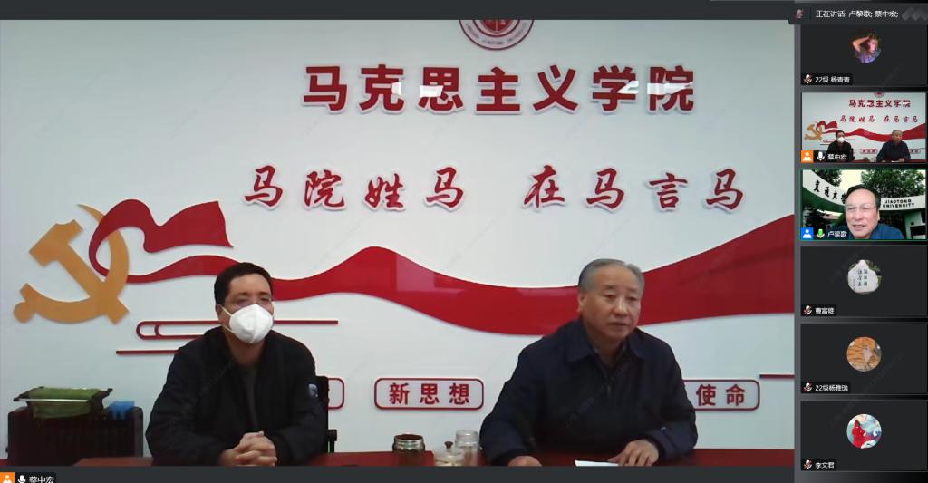 蔡中宏代表学校和学院对卢黎歌教授拨冗莅临云端用心用情用力作的精彩报告表示诚挚感谢。他表示,卢黎歌教授两个小时的报告既高屋建瓴、又贴近实际,让我们充分领略到了卢黎歌教授宏阔的学术视野、深厚的理论功底、严谨的治学精神、超强的学术能力,对全院师生的学术研究和论文写作给予了非常具有针对性和实效性的指导,使大家深受启发、获益匪浅。希望大家学习领会好卢黎歌教授的治学经验,不断增强自身的学术能力和理论素养,深入研究阐释党的二十大精神,积极推进马克思主义中国化时代化,写好“马学科”大文章、展现“马院人”新风采,为马克思主义理论学术研究、学科发展和人才培养共同努力奋斗。