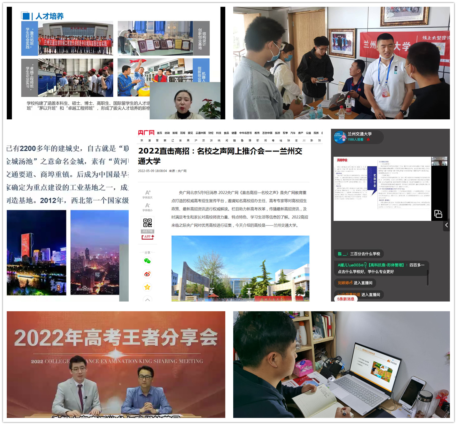 2022年,为提升招生宣传工作参与度,招生就业处相继下发了《兰州交通大学本专科招生工作宣传方案(试行)》(处发〔2022〕03号)和《关于组建兰州交通大学本专科招生宣传专家库的通知》(处发〔2022〕04号),建立了学院与外省和省内各地州的一一对接关系(每个学院对应一个外省和省内一个地市),明确了目标任务,动员全员参与招生宣传,着力打造一支专业化的招宣队伍,为我校本专科招生宣传工作赋能助力。去年共组织线上讲座、媒体访谈、直播连线等线上招宣活动80余场次,分4条线路赴省内各市州开展线下招生咨询会20余场次,收到了良好成效。