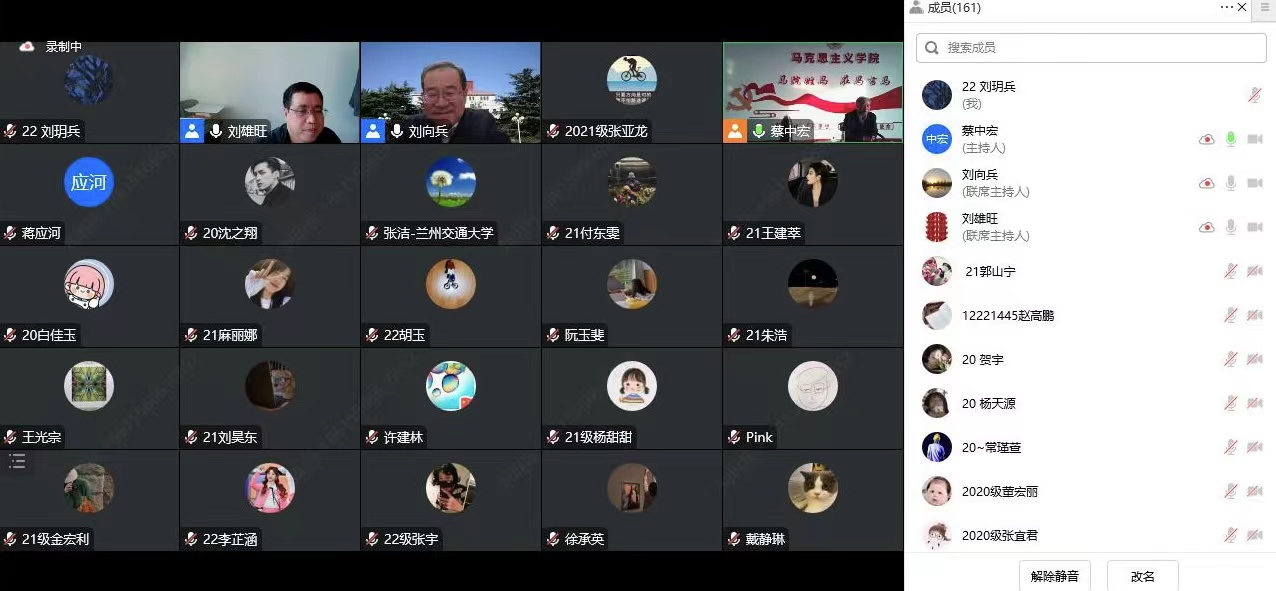 蔡中宏代表学校和学院对刘向兵书记拨冗莅临云端所作的精彩讲授表示衷心感谢。他指出,这场报告问题意识很强、问题导向鲜明,思路线索清晰、政治站位很高,思想认识到位、理论深刻透彻,纵观古今中外、关注现实问题,注重史论结合、理论联系实际,是一场高质量的学术盛宴,也是份高水平的精神大餐,对于促进我校劳动教育的有效实施、马院师生的学术研究以及研究生的成才发展都具有重要指导价值和重大现实意义。他希望马院全体师生特别是研究生要深刻学习领悟报告的思想内涵和精神实质,以更加主动的精神研究和推进劳动教育,树立正确的劳动观念,争做德智体美劳全面发展的“五好”研究生,成长为能够担当民族复兴重任的时代新人,不辜负党和人民的殷切期望。