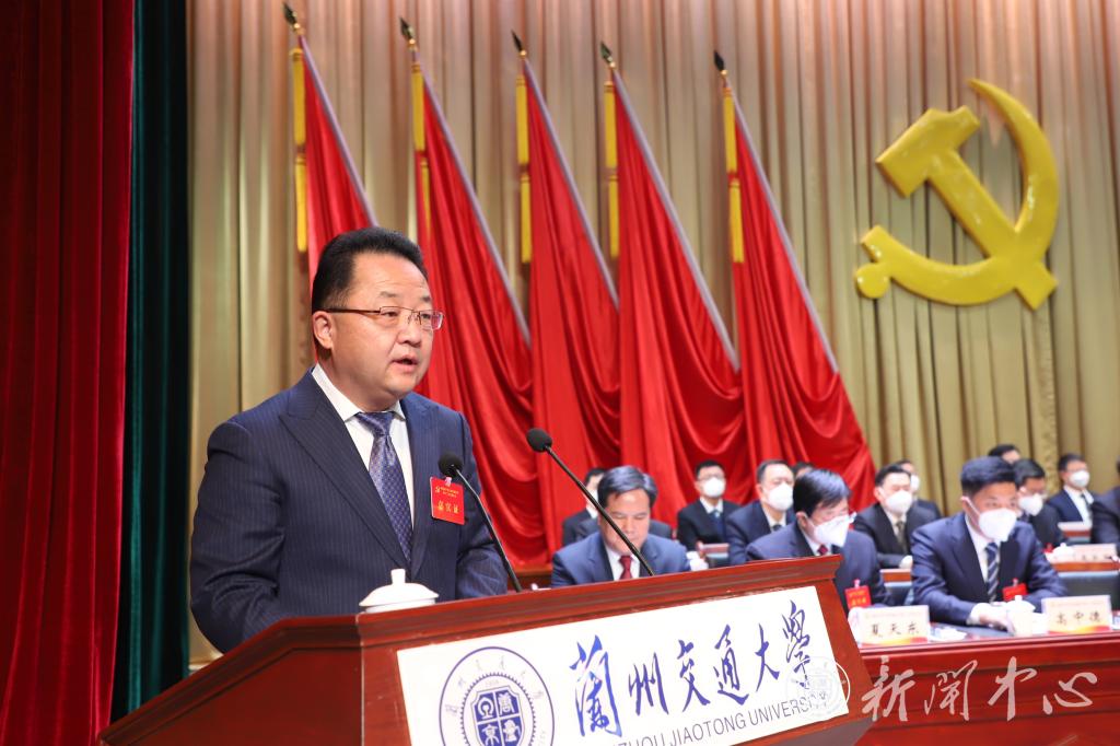 狄生奎同志代表中国共产党兰州交通大学第十一届委员会向大会作《牢记初心使命 坚持改革创新 努力建设区域优势突出行业特色鲜明的高水平大学》报告。范爱国同志代表中国共产党兰州交通大学第十一届纪律检查委员会作书面工作报告。