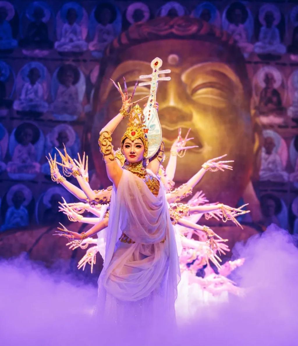 反弹琵琶的伎乐天、变化无穷的多臂菩萨、洒下五彩花雨的飞天女神,一幕幕瑰丽多彩的古丝绸之路场景生动上演,变幻的舞台场景、丰富的民族舞蹈造型、唯美的舞姿令人目不暇接,舞蹈艺术家们精湛的表演让留学生们产生的强烈共鸣,掌声此起彼伏,经久不息。