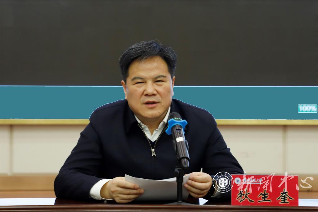 狄生奎在会后指出,全体干部教师要结合学校发展实际,结合各自教学科研和管理工作现状对张厅长的报告内容再学习、再思考、再研讨交流,要紧抓西部大开发、乡村振兴、甘肃省“一核三带”“四强行动”等战略机遇,把学习贯彻党的二十大精神与学习贯彻习近平总书记关于科技创新的重要论述贯通起来,与全面落实省第十四次党代会精神和学校十二次党代会精神结合起来,统筹教育、科技和人才,加强科技工作的预见性、针对性和有效性,进一步提高我校的科技攻关能力、科研创新能力、科技转化能力和服务地方能力,特别是要加强科研平台建设和团队打造,坚定不移实施“强科技行动”,为地方经济社会发展提供人才和科技支撑,为建设幸福美好新甘肃贡献交大力量。